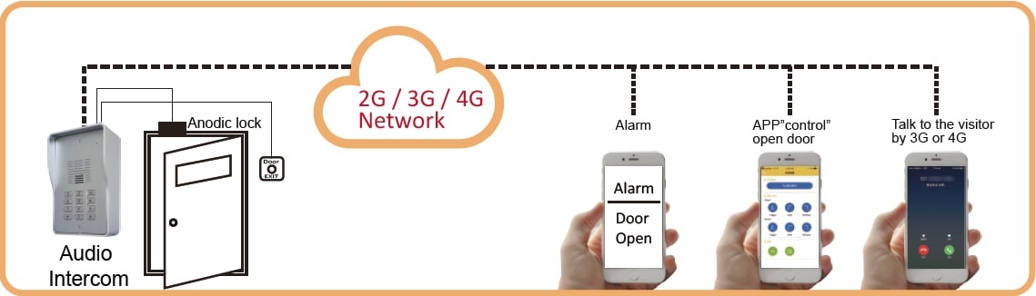 El sistema de intercomunicación GSM 4G es fácil de ingresar y salir: simplemente marque un número y la puerta se abrirá. El bloqueo del sistema, la adición, la eliminación y la suspensión de usuarios se realiza fácilmente con cualquier teléfono. La tecnología de los teléfonos móviles es mucho más segura y fácil de administrar y, al mismo tiempo, elimina la necesidad de utilizar múltiples controles remotos y tarjetas de acceso especiales. Y como todas las llamadas entrantes no son respondidas por la unidad GSM, no hay cargo de llamada para los usuarios. El sistema de intercomunicación admite VoLTE, disfruta de una calidad de llamada más clara y una conexión telefónica más rápida.